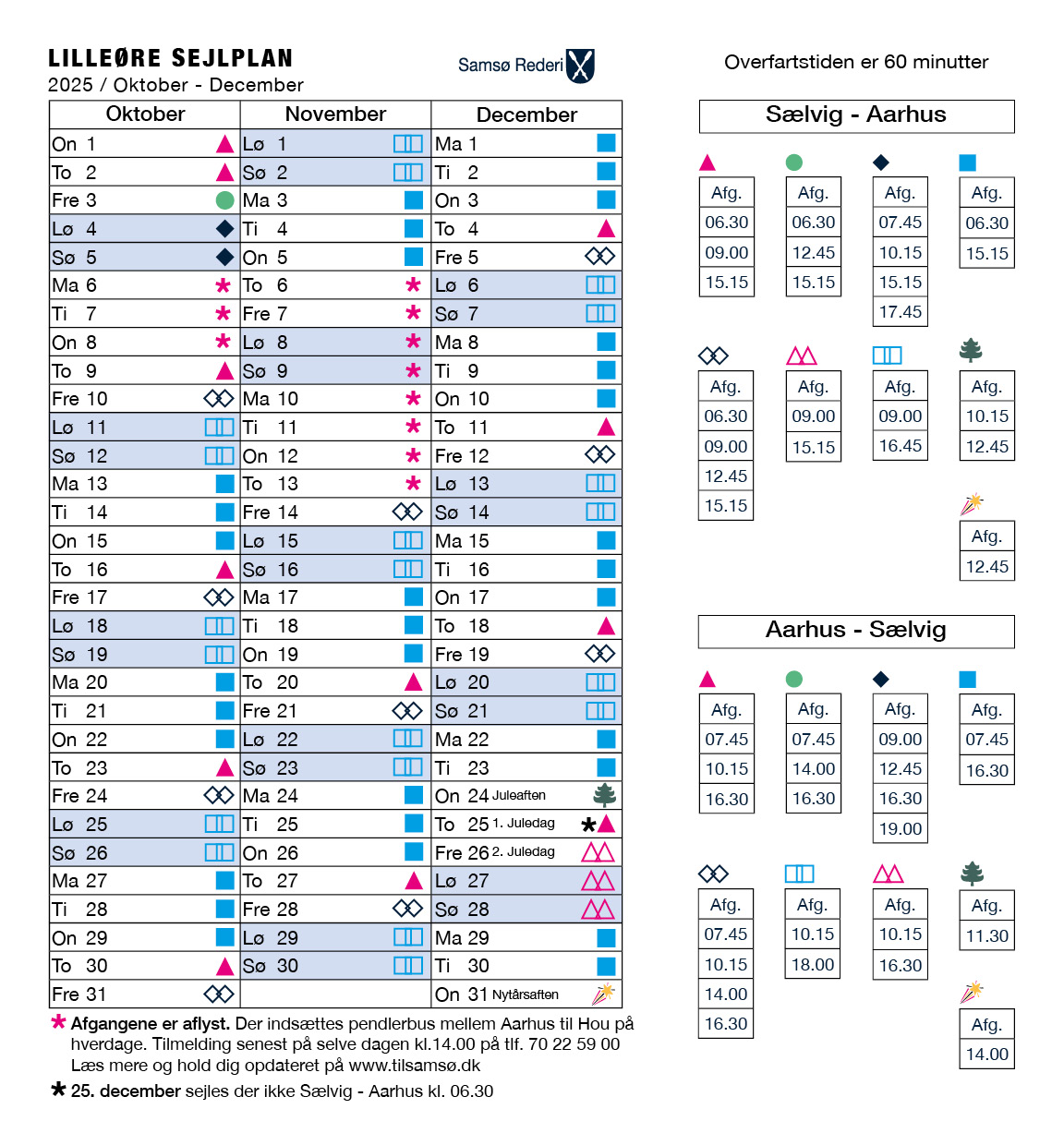 Hvor ligger vores hurtigfærge fra Aarhus til Sælvig og færgen fra Hou til Sælvig til?
