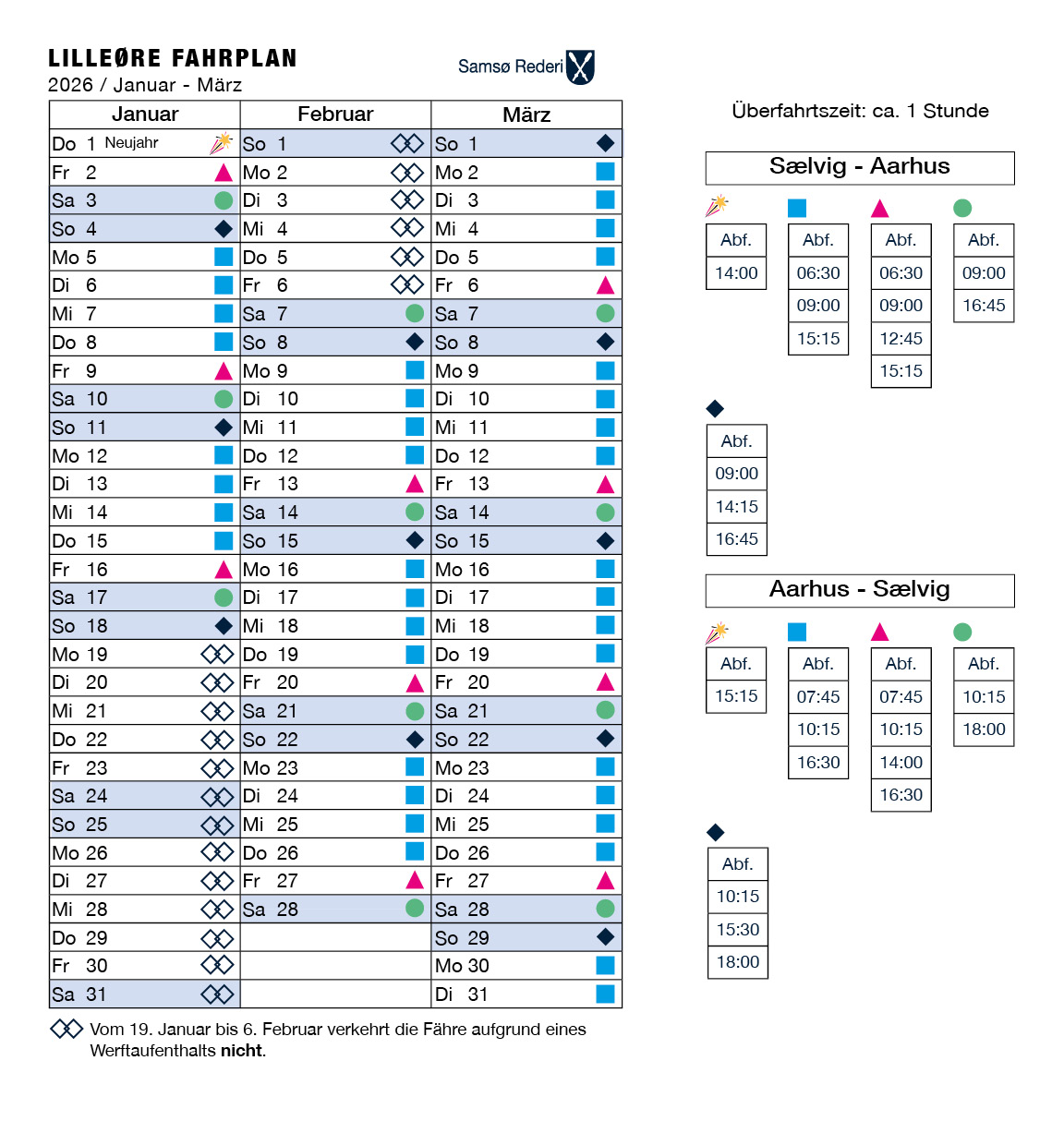 Der Einsatz der LILLEØRE nach ihrem Dockaufenthalt in der Werft in Grenaa wird auf Samstag, den 7. Februar, um 9:00 Uhr ab Sælvig verschoben. Ursprünglich