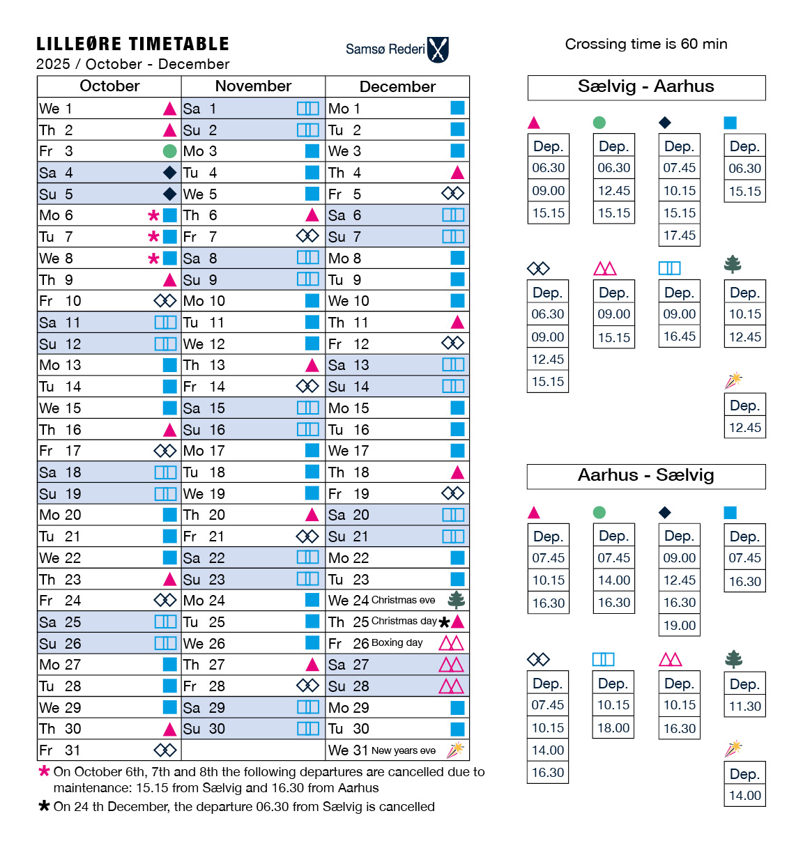 The crossing time is 60 minutes, so lean back and enjoy the ferry ride.