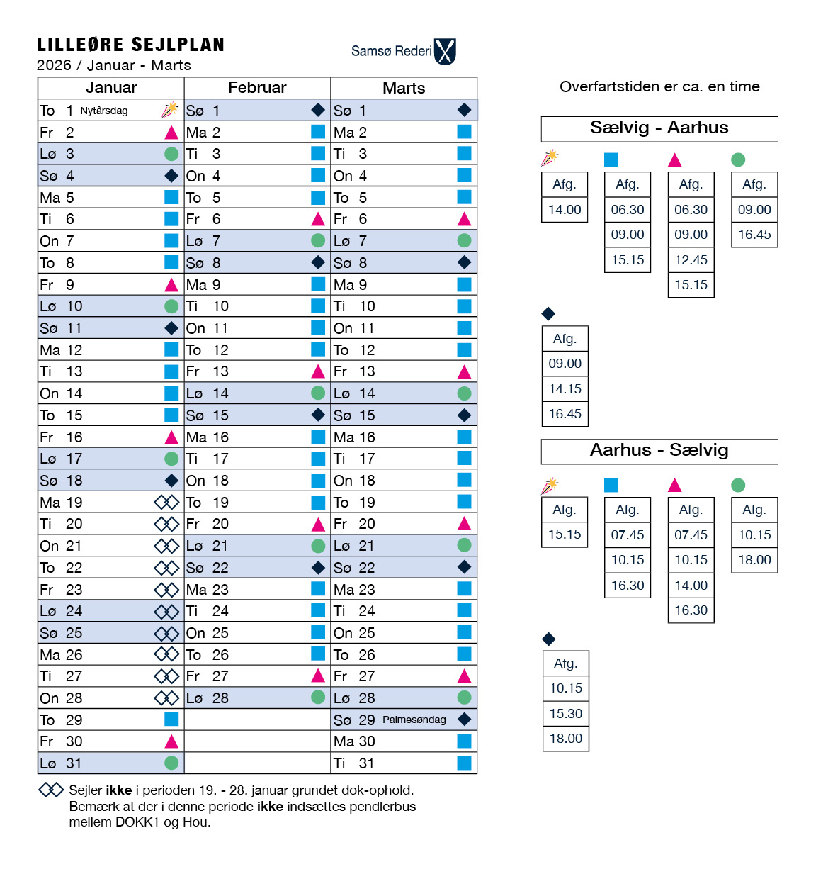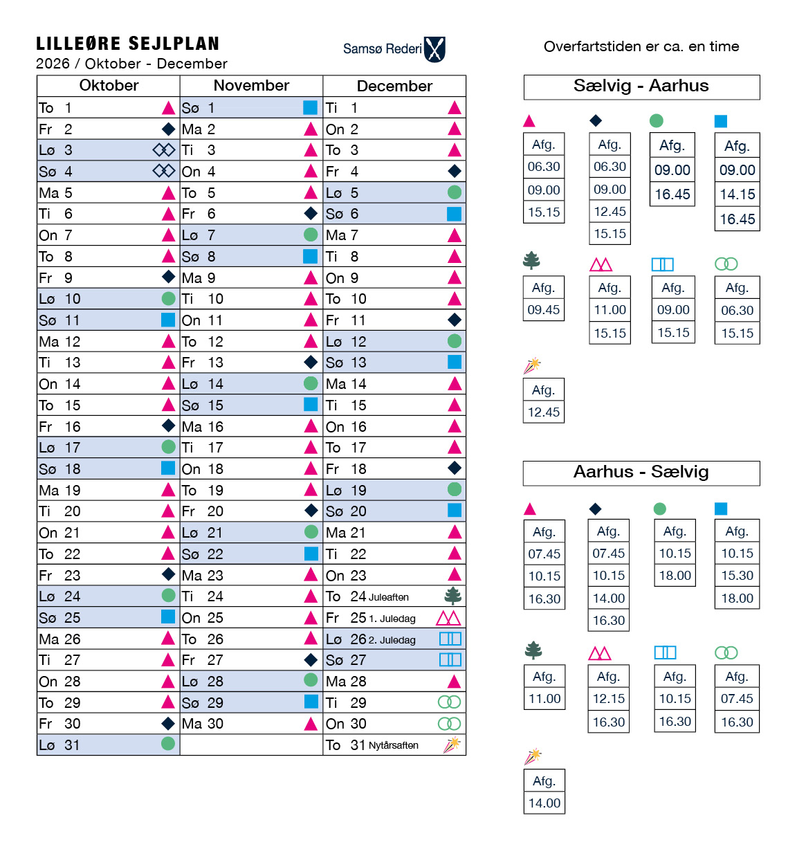 Her kan du se sejlplan for vores hurtigfærge der sejler på ruten Aarhus - Sælvig
