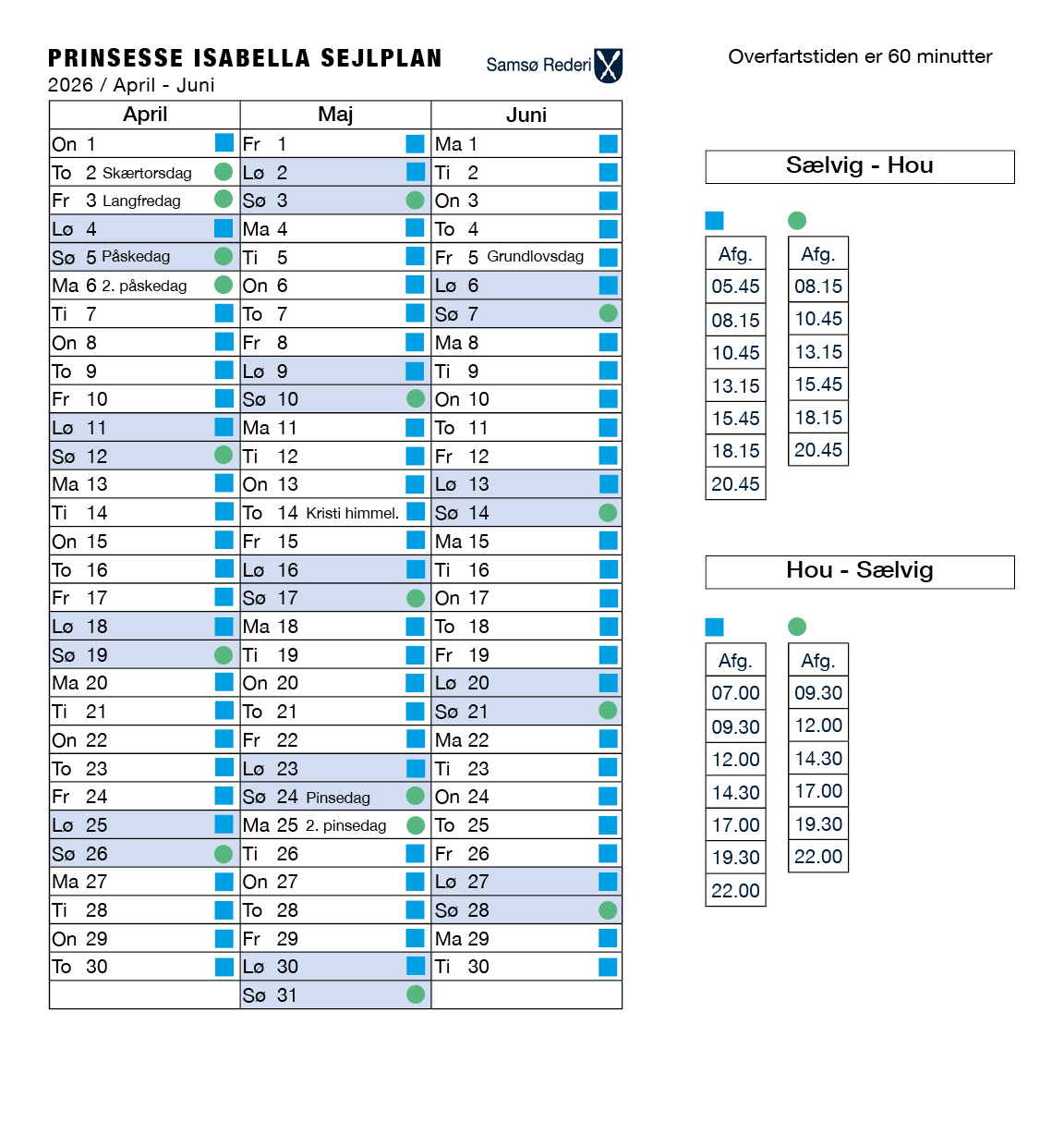 Sejlplan Hou - Samsø (Sælvig) 2026