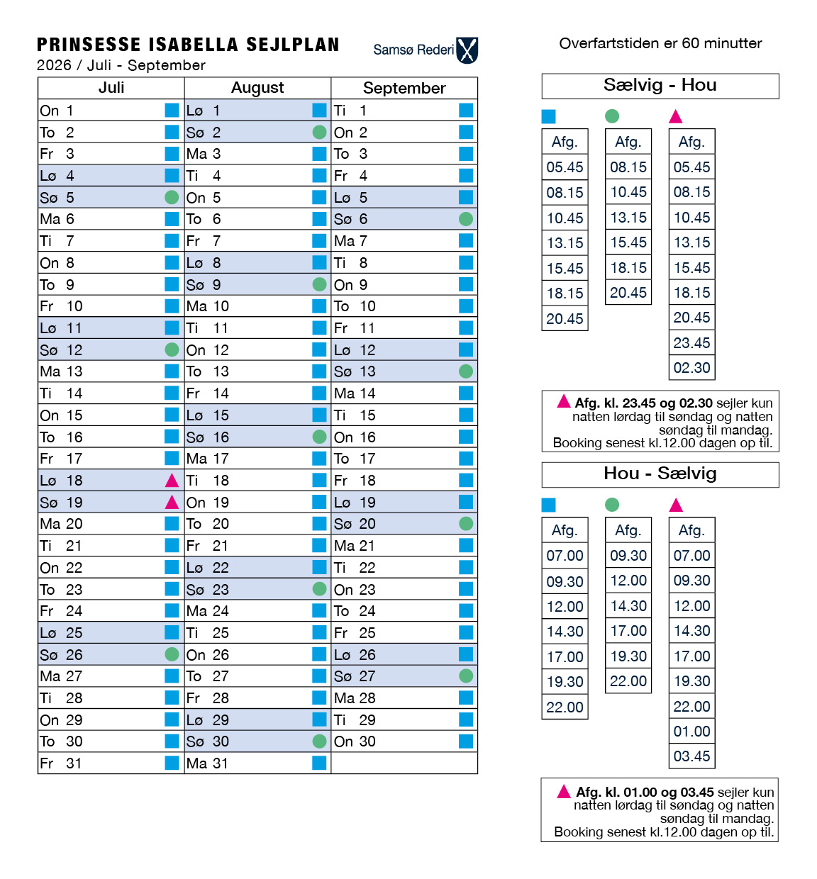 Vores færge Prinsesse Isabella sejler dig fra Hou til Samsø.